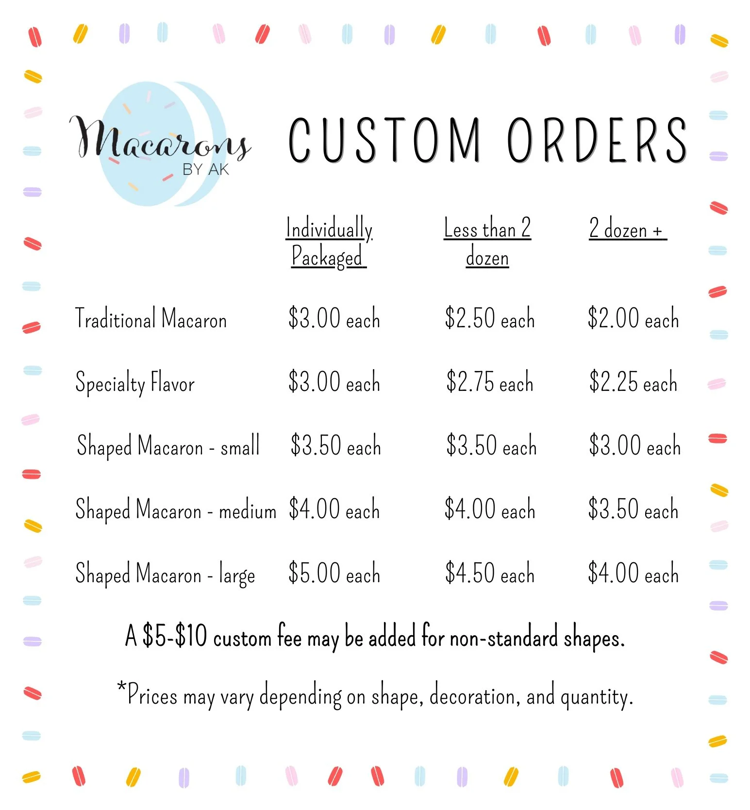For pricing on large orders, please email aksbakeryatanchuca@gmail.com